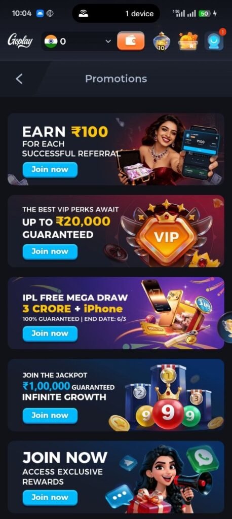With the Goplay App Referral Program, you can earn extra rewards by inviting your friends. Share your referral code and get bonuses when your friends join and play.